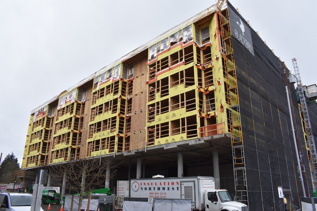 Blackbird Apartments is located in Redmond WA and being built by Sierra Construction. Exterior Finishes is going to complete the entire exterior scope including the windows and penetrations. This is a Vapro Shield system we are installing. We unload, mobilize and install the complete system.